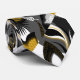 Dessin abstrait botanique jaune et gris ; des accents blancs et noirs lui donnent un aspect moderne.