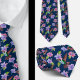 Cravate Aquarelle florale bleu marine Fleurs de colibris