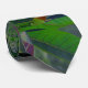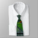 Avec l'allure d'un tissu tropical rétro design, la photo originale de MaeFlowers sur cette Cravate est un closep de feuilles verts avec leurs détails linéaires et courbes gracieuses. Certains feuilles attrapent la lumière de manière à ajouter des teintes de rouille et de violet. L'arrière - plan de la photo est un flou de vert doux. La photo est répétée le long de la cravate, avec des bandes noires entre les deux.