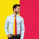 Une cravate design de deux couleurs en pourpre et or. Est-ce que le pourpre et l'or sont vos couleurs scolaires ? Si c'est le cas, cette cravate aurait l'air de vous féliciter pour votre tenue pour les jeux scolaires, la remise des diplômes et d'autres occasions.