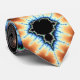 Cravate présentant le détail et la beauté merveilleux de l'ensemble de Mandelbrot. La conception est symétriquement encadrée, et montre en évidence la forme distinctive de "ampoule" de Mandelbrot dans un or pointu et une palette bleue.