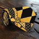 Une cravate design moderne avec un motif géométrique en ocher et noir avec une touche d'or (imprimé). Vous pouvez mettre à l'échelle et/ou faire pivoter la conception si vous le souhaitez. Le monogramme et son carré arrière - plan sont des fichiers séparés et peuvent être customisés ou supprimés.