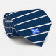 Une cravate pour des amants de l'Ecosse et toutes les choses écossaises avec un motif rayé horizontal classique dans le blanc ont affilé avec le noir sur un arrière - plan de bleu marine. Il y a un graphique discret du drapeau de l'Ecosse au bout, avec la croix du St Andrew blanc sur le bleu. Vous pouvez changer l'arrière - plan de couleur en costume avec le bouton de personnaliser.