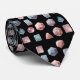Une cravate noire élégante avec un motif ludique de dés RPG, dont d4, d6, d8, d10, d12 et d20 dans les tons rose pastel et bleu. Parfait pour les amateurs de jeux de table, les fans de Dungeons & Dragons, ou ceux qui cherchent à ajouter une touche unique et geek-chic à leur tenue formelle ou décontractée.