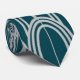 Cette cravate a un design fait de coupoles et lignes verticales en argent sur un champ de bleu.