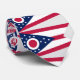 Cette conception est ornée du drapeau de l'État de l'Ohio, qui se trouve dans la région est du centre-nord du Midwest américain. Columbus est la capitale et la plus grande ville de l'État ; Cleveland et Cincinnati sont d'autres grandes métropoles. L'Etat tire son nom de la rivière Ohio, dont le nom est venu, à son tour, d'un mot américain natif signifiant "bonne rivière", "grande rivière" ou "grande crique". L'Ohio est bordé par le lac Érié au nord, la Pennsylvanie à l'est, la Virginie-Occidentale au sud-est, le Kentucky au sud-ouest, l'Indiana à l'ouest et le Michigan au nord-ouest.