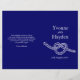 Plan simple en blanc et bleu marine foncé d'un programme de mariage en forme de coeur. Moderne design mariage de style simple et à la mode partie de l'amour noeud mariage stationnaire . Modifiez ce programme de mariage avec votre nom, dates, libellé de la cérémonie, accompagnateurs de mariage et merci. Un programme simple mais élégant remplace simplement l'exemple de texte par vos informations de mariage et plie les programmes en deux à la livraison. Un programme de mariage parfait pour un simple mariage moderne pour montrer votre union et votre unité. Dessin unique et design par Sarah Trett.
