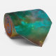 Cravate multicolore brillante montrant une partie de l'univers infini. Nébuleuse rougeoyante et étoiles de tourbillonnement. Verts, bleus, roses et rouges.