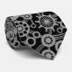Une cravate au design abstrait intéressant et diversifié, composée de formes circulaires de styles différents reliées par des lignes fines comme un réseau ou un écosystème.