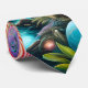 Un paysage imaginaire surréaliste avec des champignons éclatants, une flore alien vibrante, une cascade et un soleil tourbillonnant dans le ciel. La scène est riche en couleurs et en détails complexes, évoquant une atmosphère onirique et autre
