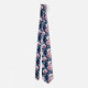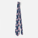 Cravate Fleurs blanches et roses sur bleu foncé.