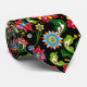 Cravate Fleurs colorées rétro Motif sur noir