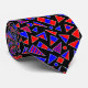Un design original composé principalement de formes colorées, principalement des triangles, mais aussi de quelques rectangles et cercles en rouge et bleu bordés de blanc.
