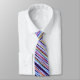 Cette cravate comporte un motif de fractale d'intersecter les rayures diagonales. Les couleurs incluent le bleu marine, le rouge, le blanc, le jaune, l'aqua et bleu-clair. La conception est imprimée des deux côtés.