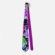 Cette cravate est très abstraite dans les tons turquoise, rose, violet, lavande, perwinkle, vert, noir et blanc.
