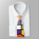 Cette cravate a un design moderne du milieu du siècle d'une grille avec quelques rectangles colorés et des cercles sur le dessus dans des couleurs rétro.