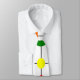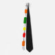 Cette cravate a une conception Bauhaus d'une grille avec des formes en rouge, jaune, orange, vert et bleu tracés dessus.
