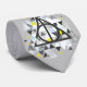 Check out this geometric styled Deathly Hallows symbole, surrounded by gray, yellow, and blue triangles.