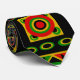Cette cravate Black History design a un motif de carrés avec des cercles ou des triangles et des diamants en rouge, or, vert et noir.