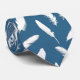 Impression en plumes blanches sur denim moyen bleu - dessin graphique en média mixte de plumes blanches, flottant sur un arrière - plan de couleur contrastée