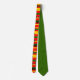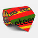 Cette cravate a un design Junetten de bandes rouges, vertes et jaunes avec des chaînes de poignet cassées et le mot "Junetten" se répétant tout au long de la conception.
