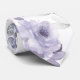 Un cravate mariage violet, mauve, lavande et blanc avec des pivoines mauves aquarelées et violettes à la végétation d'eucalyptus gris argenté contre un arrière - plan blanc pur et solide.