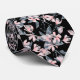 Une cravate avec un élégant motif fait avec une aquarelle illustration de fleurs roses avec feuilles et tiges bleu-gris. Arrière - plan noir classique.