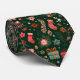 Une belle cravate motif de noël avec des cadeaux emballés, des bas de noël et des fleurs florales d'hiver sur un arrière - plan vert foncé. Un bel accessoire festif pour la saison des fêtes.