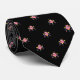 Une cravate masculine noire amusante avec des robots roses modelés dessus.
