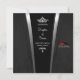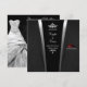 Célébrez votre journée spéciale dans l'élégance intemporelle avec ce Modèle Faire-part de mariage Diamond Cravate Noire. L'avant est doté d'un graphisme de smoking sophistiqué, avec une veste à quatre poches détaillée, dont une poche à poitrine et des poches avant inférieures, donnant une sensation de cravate noire luxueuse. Un titre de destination et un espace réservé à la date sont inclus pour une personnalisation aisée, le tout encadré de motifs fleur de lis. Le dos met en valeur une robe à bille en forme de corset perlée de cristal, qui encadre l'invitation magnifiquement contre un riche arrière - plan noir damassé. Les détails Fleur-de-lis ci-dessus et ci-dessous rehaussent le raffinement formel, ce qui rend cette invitation parfaite pour les couples à la recherche de glamour classique et de personnalisation haut de gamme.
