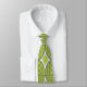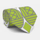 Cette cravate a un design art déco d'ovales verts avec des lignes grises et des diamants avec des diamants entre sur un champ de blanc.