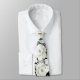 Un cravate mariage blanc et noir avec des pivoines blanches aquarelées et verdoyantes contre un arrière - plan noir solide.