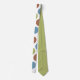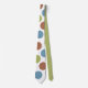 Cette cravate a une conception géométrique de points bleus, verts et marron.