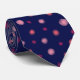 Cette cravate présente des taches ou des points rustiques aléatoires en rose, corail et fuchsia sur bleu marine pour un look géométrique moderne.