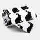 Ce cravate est blanc avec une image répétée du profil latéral d'un lapin assis en silhouette noire.