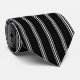 Cette cravate rayée noire et blanche a les rayures verticales.
