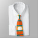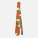 Cette cravate a un design moderne du milieu du siècle de rectangles orange avec des cercles blancs et or dedans et lignes horizontales turquoises les traversant sur un champ de turquoise.