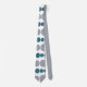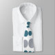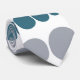 Cette cravate a un design moderne du milieu du siècle de rectangles arrondis turquoises et gris de taille croissante et décroissante qui tournent horizontalement sur un champ de blanc.