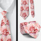 Une cravate rose aquarelle présente un design délicat et doux, où les roses sont peints dans des nuances subtiles de rose, allant du blush pâle à des teintes roses plus profondes. Les fleurs semblent être mélangées doucement avec les traits fluides de l'aquarelle, leur donnant un aspect doux et éthéré. La cravate a un doux dégradé de couleurs, avec des éclaboussures de feuillage vert ou clair autour des roses pour améliorer la beauté naturelle des fleurs. L'ensemble serait élégant, romantique et sophistiqué, idéal pour des occasions formelles ou une touche raffinée, mais subtile, à une tenue professionnelle.