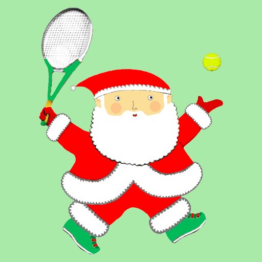 Nocturne de Noël sur le thème du tennis avec joueur de tennis Père Noël.