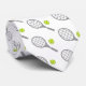 Tennis racket and ball custom's tie. It showcases a grey racket, a green tennis ball on white background. Some element courtesy of vectorportal.com