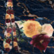 Tie à fleurs magnifiques jaune or, bleu marine et bleu poussiéreux et roses florales. Idéal pour les occasions formelles et les mariages !