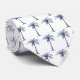 This cool tropical tie features an artistic navy blue palm tree silhouette pattern over a white background on the front and solid white background on the back.