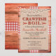 Dieses rustikale Design zeichnet sich durch einen Holzboden mit rot-weißem Band aus. Dazu kommt eine Burlap-Textur, eine rot-schwarze Serif und ein handgeschriebener Script-Schriftart, der sich an Ihre Veranstaltung anpassen lässt, ob es sich um eine Crawfish-Boil, Hummer, Meeresfrüchte oder Fischkohle handelt. Feiern Sie mit dieser Einladung Ihren Abschluss, Geburtstag, Verlobung oder jede Veranstaltung im Stil!
