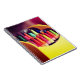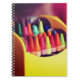 Dieses Notizbuch hat farbenfrohe Stifte, die darauf abgebildet sind.