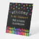 Crayons Stars farbenfrohe Willkommenslehrerin im K Sockelschild