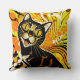 Abstraktes Retro-Portrait einer schwarzen Katze für einen Katzenliebhaber in einem bunten Kissen