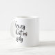 Fun Cat Tasse. In schwarzer Schrift sind die Worte Crazy Cat Lady. Beide Seiten der Schrift sind ein kleiner, grau-weißer Katzenkopf mit Augenpunkten und rosa Ohren.