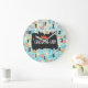 Crazy Cat Lady Playful Cat Pattern Große Wanduhr