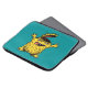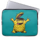 Der verrückte, hirnlose Chicken-Monster-Laptop-Ärmel mit einer Zeichentrick-Illustration gezeichnet in digitaler Tinte in Gelb und Blau Grün.